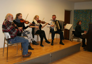 Gruppen var Århus Folkemusikhus’ første husorkester – deraf navnet. Vi spiller jysk musik, og mange års erfaring.
